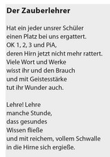 Bei der Abschlussfeier 2018 hat Dozentin Heike Kistner den "Zauberlehrling" von Johann Wolfgang von Goethe umgedichtet:
