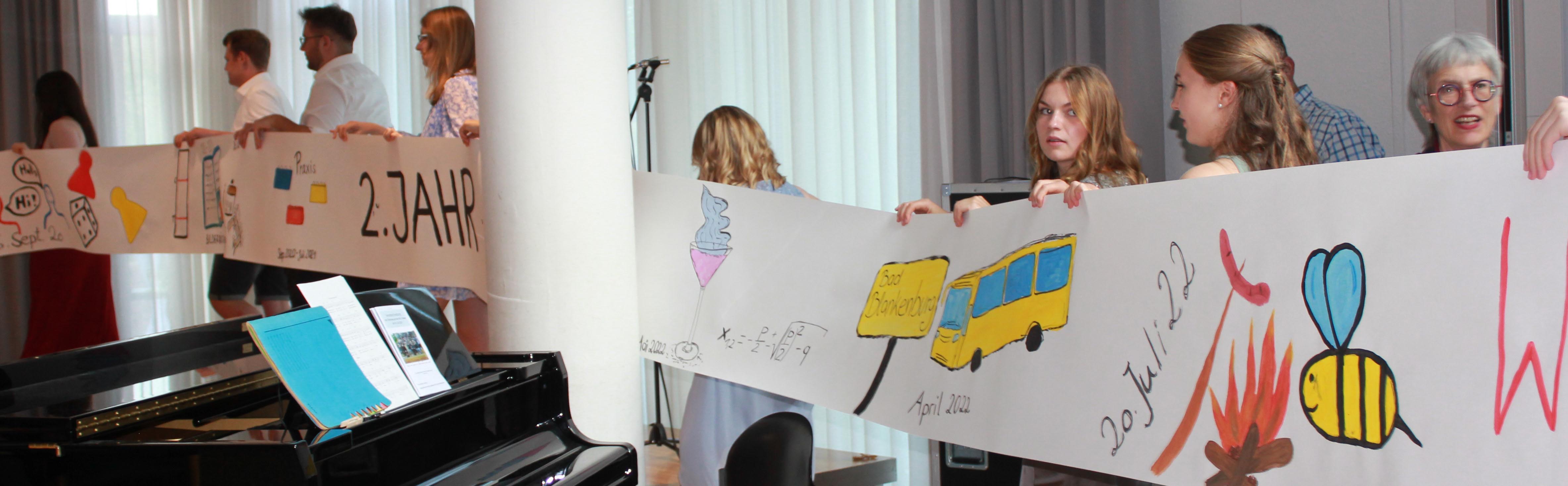 Die beiden Oberkurse und PiA3 erlebten im Juli 2023 ein gelungenes Abschlussfest - mit musikalischer Begleitung der Studierenden und Dozentinnen, beim Nachdenken über Lieblingsorte und mit einem Rückblick auf die drei Jahre Ausbildung. Herzlichen Glückwunsch an alle!