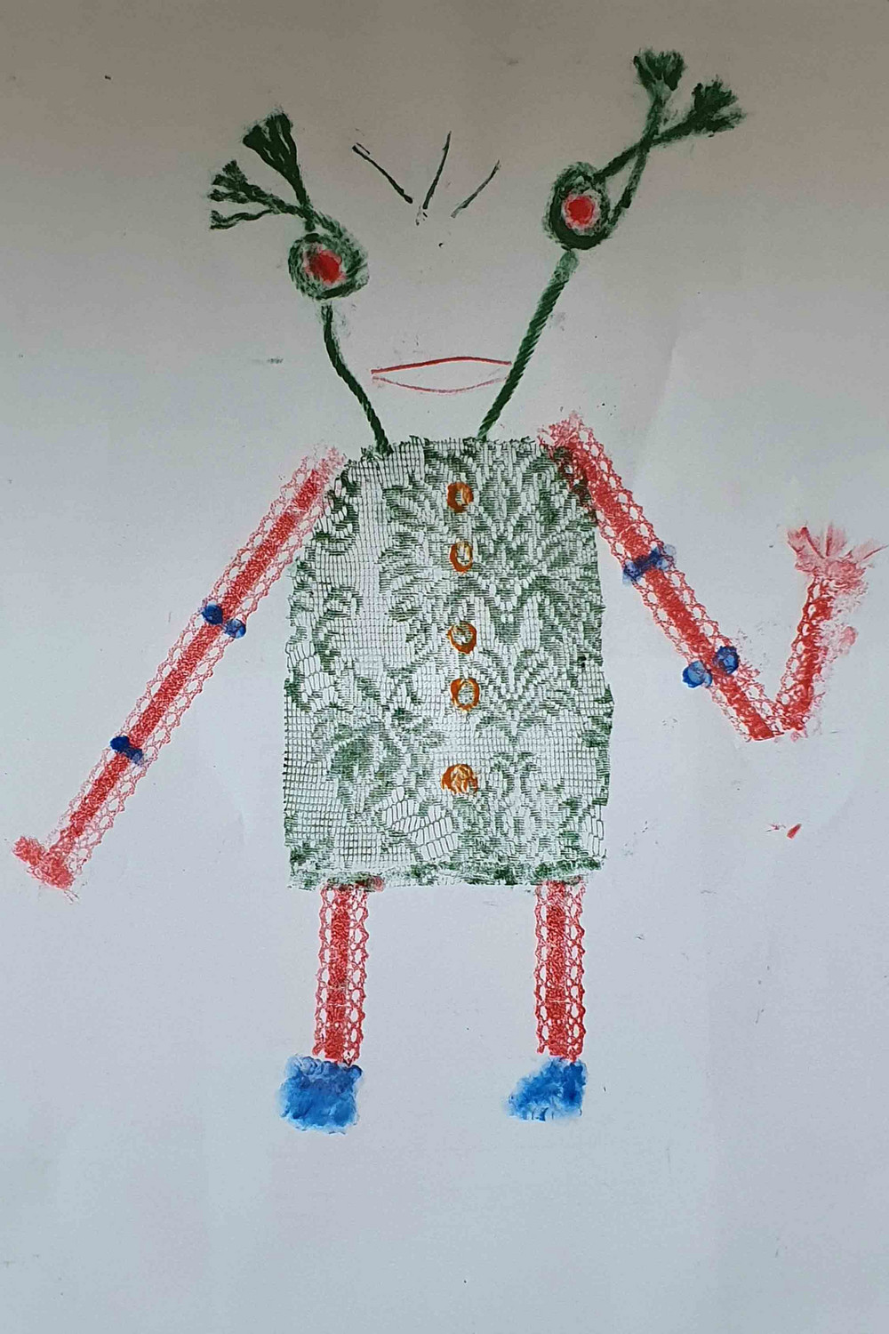 Die Auseinandersetzung mit Kinderzeichnungen bringt unsere Schülerinnen und Schüler mit Befindlichkeiten und Erinnerungen an ihre eigene Biographie in Kontakt. Bei den meisten kommen dabei angenehme und positive Gefühle hervor. Vor diesem Hintergrund wurde die Aufgabe gestellt, nun die eigenen Kinderzeichnungen in ein Kuscheltier in textiler Weise umzusetzen. Wichtig dabei war es, dass das Kuscheltier tatsächlich von Kindern bespielt werden kann, also auch stabil hergestellt wird, und dass es möglichst verschiedenartige taktile, akustische und optische Qualitäten besitzt. Wunderschöne Liebhaberstücke sind entstanden.