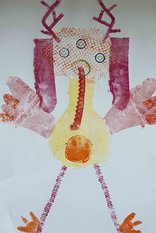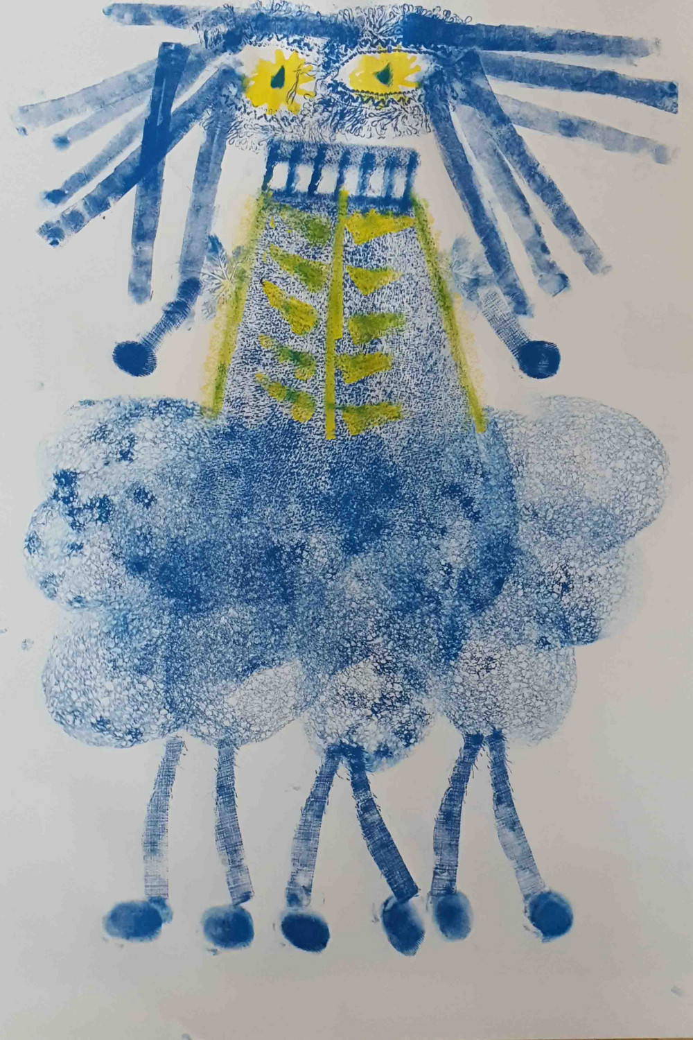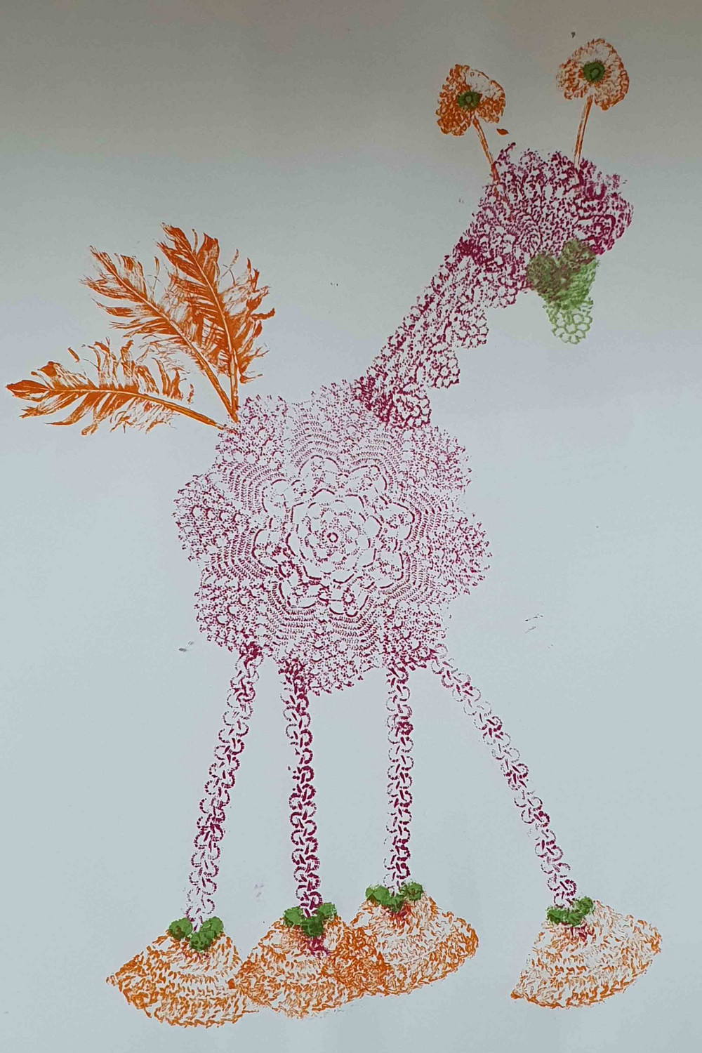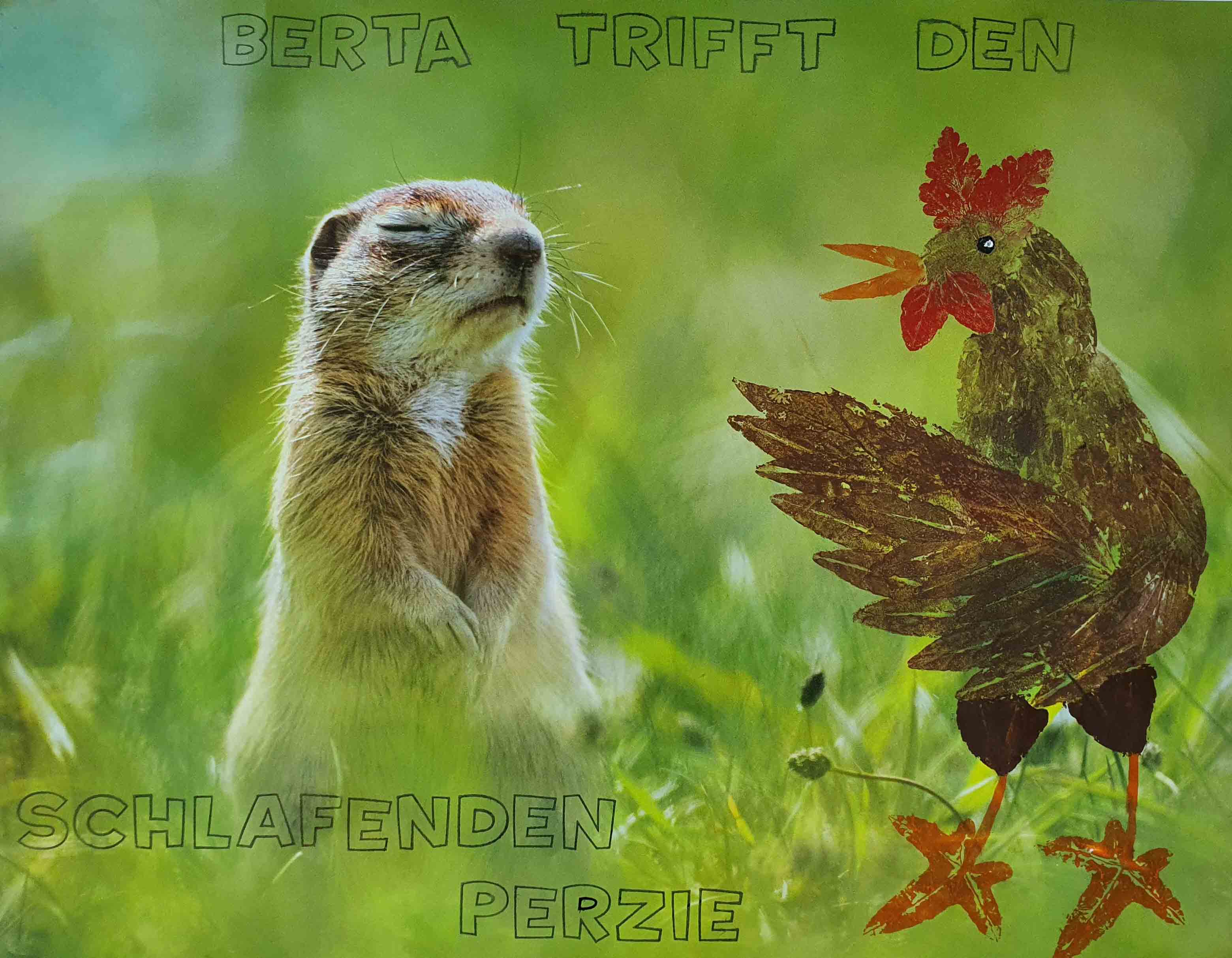 Gestatten, Berta Laurenzius. Ich bin das Unterrichtshuhn und verstehe mich als Impulsgeberin für das Kreativitätsmanagement der angehenden Erzieherinnen und Erzieher. Ganz nach meinem Motto: Berta verleiht Flügel! Wem? Unserer Kreativität natürlich. Und so haben die Studierenden einen Riesenspaß dabei, immer neue Tierbegegnungen zu inszenieren und dabei die verschiedensten Drucktechniken auszuprobieren und wichtige Erfahrungen für die spätere Berufspraxis zu sammeln. Das Ergebnis ist vielseitig, ästhetisch und kann sich wirklich sehen lassen.