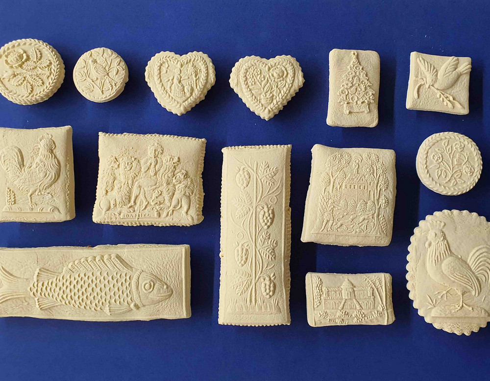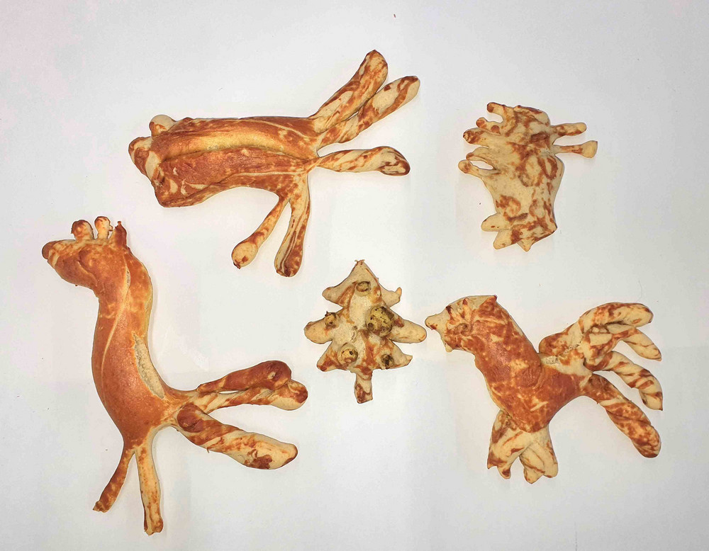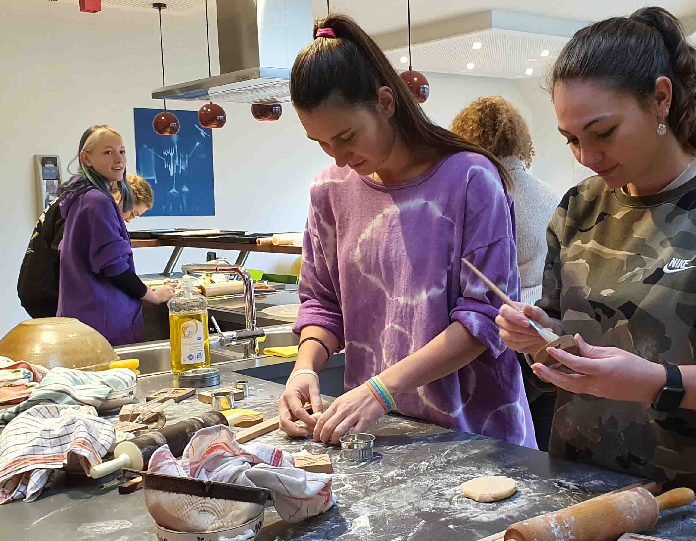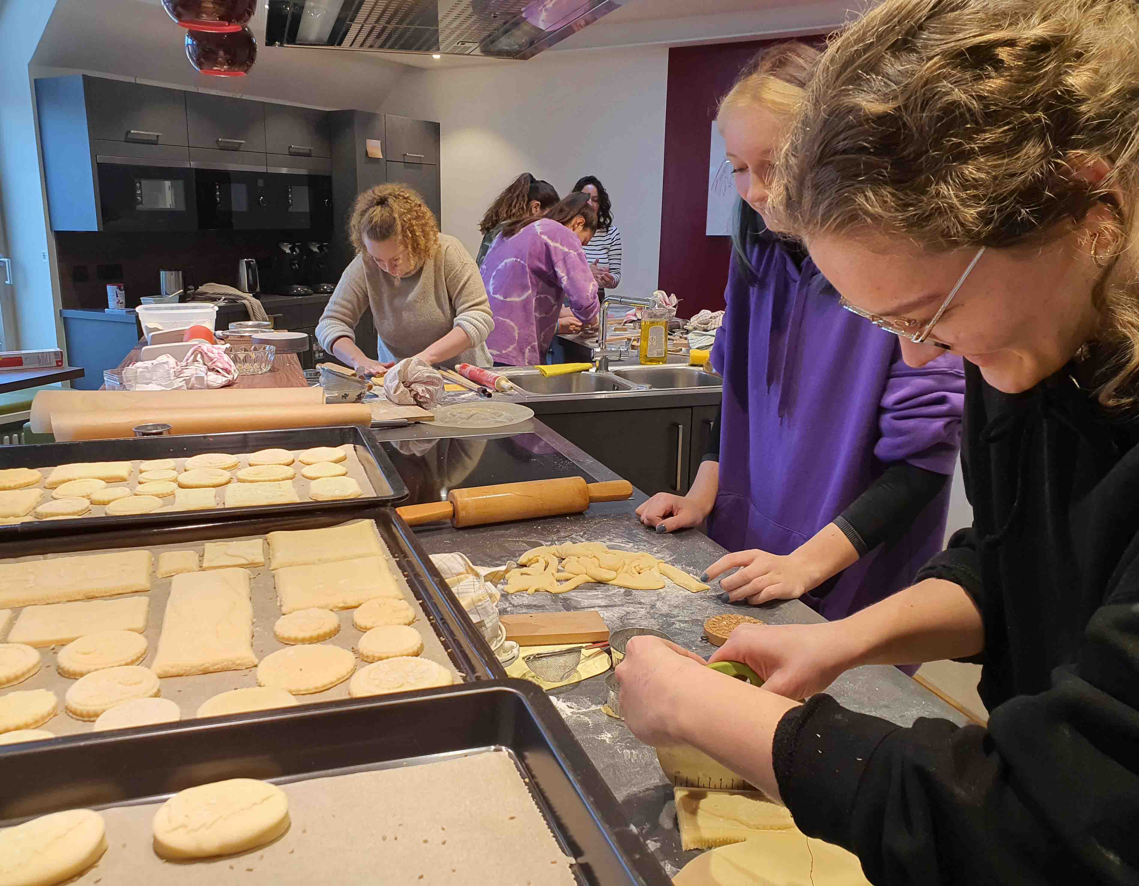 In der Weihnachtsbäckerei: Im Oberkurs beschäftigen wir uns seit einigen Wochen mit dem Thema des plastischen Gestaltens. Inhalt des Lehrplans ist unter anderem das Thema Plastik, Skulptur und Relief. Mit Gips, Ton, Wachs, Seife, Papier und Teig haben sich die Studierenden mit dem Themenkomplex beschäftigt. In diesem Zusammenhang sind in der Weihnachtsbäckerei Springerle entstanden.
