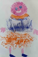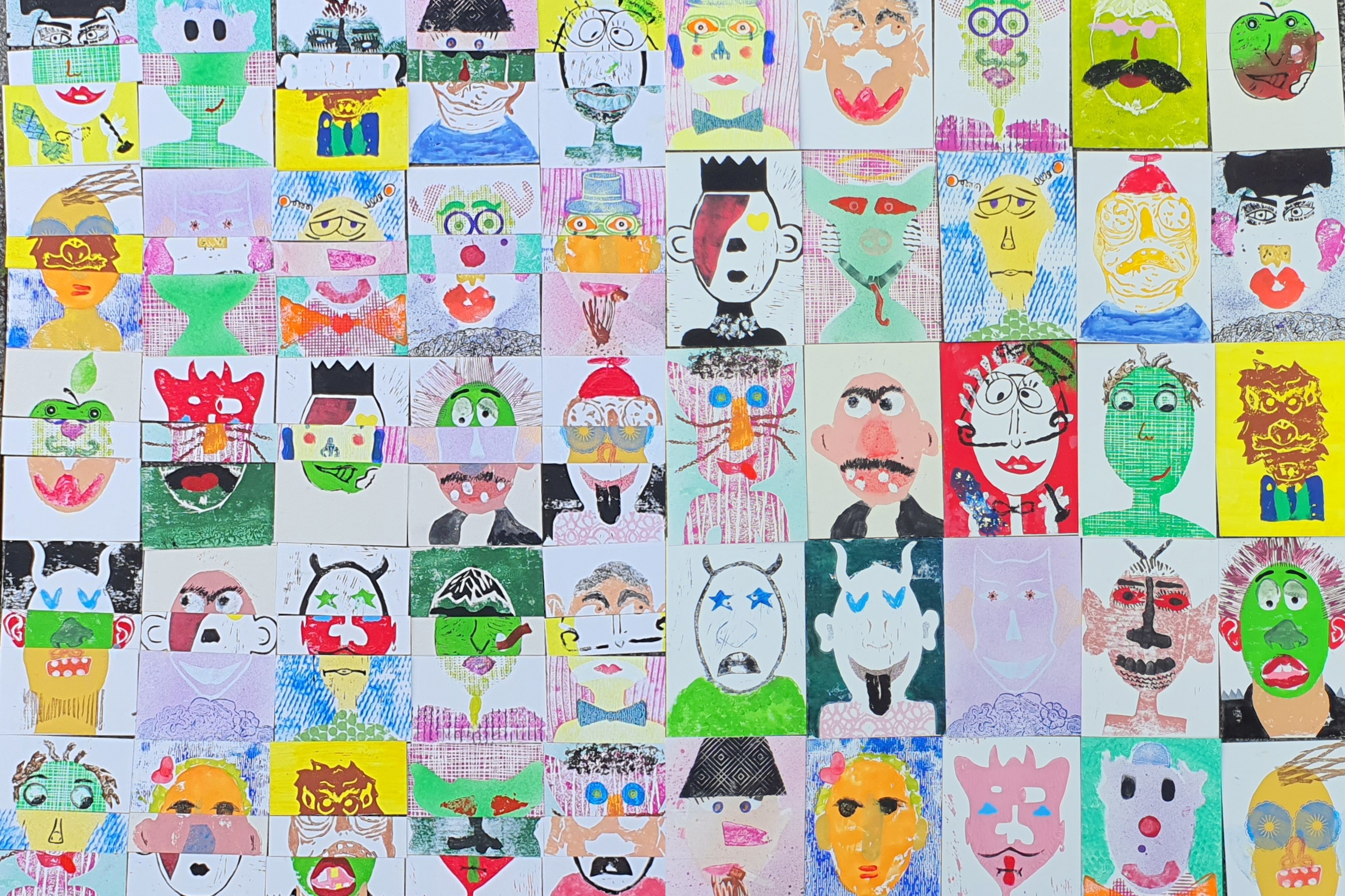 PiA 1 gestaltete ein Legespiel, für das die verschiedensten Drucktechniken und Materialien zum Einsatz kamen. Von Spitzendeckchen bis Linoldruck war alles dabei und so entstanden individuelle Portraits die vielfältig kombiniert werden können.