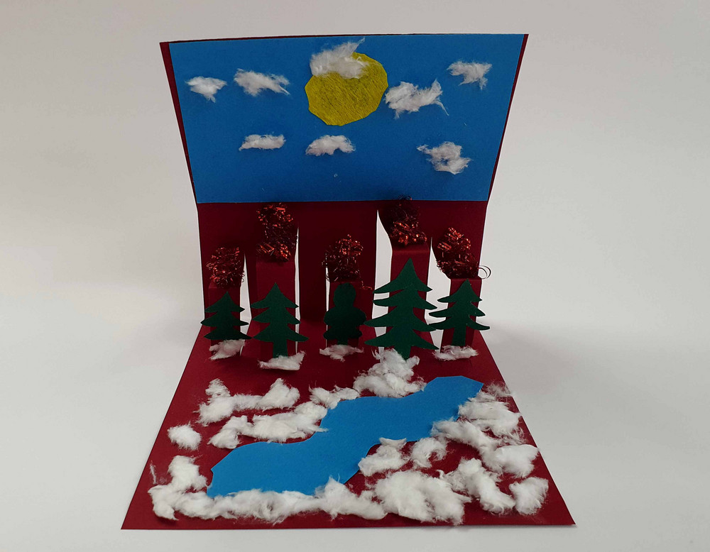 Im Berufskolleg war es die Aufgabe, aus einem DINA0-Bogen Papier ein Buch zu falten. Nachdem wir uns auf ganzheitliche und sehr vielschichtige Weise mit dem Thema Papier auseinandergesetzt haben, untersuchten wir viele verschiedene Möglichkeiten, wie man Papier in der sozialpädagogischen Praxis bearbeiten kann. Von Reißen, Schneiden, Kleben, Flechten, Weben, Falten, Spiegeln, Pricken, Collagieren bis hin zu Kreationen des Pop-up wurde vieles erprobt. Anschließend hatten alle die Aufgabe, ein Papierzählbuch oder eine Geschichte aus Papier zu planen und diese in das gefaltet Buch zu integrieren. Die Bücher konnten anschließend im Kindergartenpraktikum den Kindern gezeigt werden. Die eine oder andere Technik, mit Papier zu gestalten, wurde im Praktikum dann auch aufgegriffen.