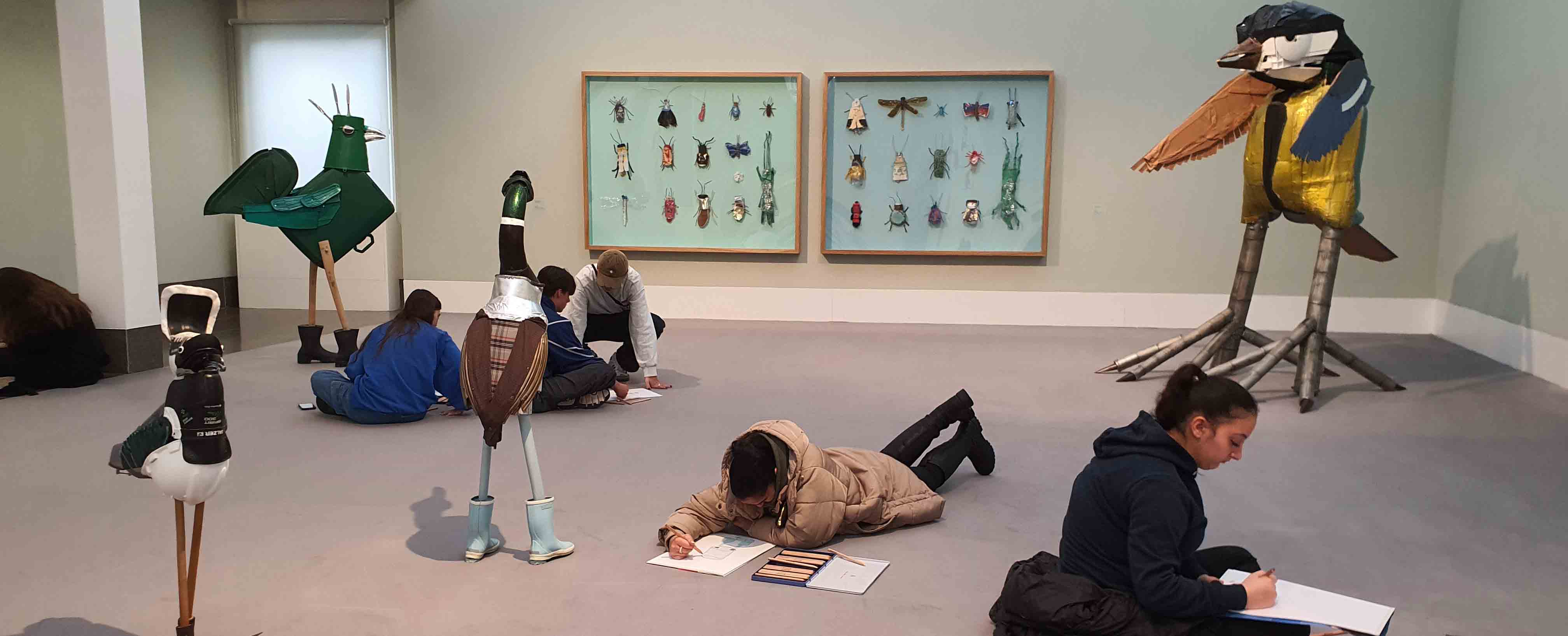 Mit großer Vorfreude ging unsere "Berta Laurenzius, das Huhn - Kreativgruppe" ins Museum im Kleihuesbau in Kornwestheim in die Ausstellung "Wolkenkuckucksheim". Im Unterricht haben wir allerlei geflügeltes Getier entwickelt und uns mit unterschiedlichen Materialvorgaben zum Thema "kreativer Prozess" auseinandergesetzt. Der Besuch der Ausstellung "Wolkenkuckucksheim" von Matthias Graff in Kornwestheim erweiterte den Blick in die Museumspädagogik. Das Zeichnen der Ausstellungsobjekte führt uns zum nächsten Themenblock Kinderzeichnung. Außerdem entstanden in konzentrierter Arbeit auch Klangcollagen zu gefiederten Tieren und eine Gesangsperformance unseres UK-Männerchors. Eine gelungene Aktion für alle.