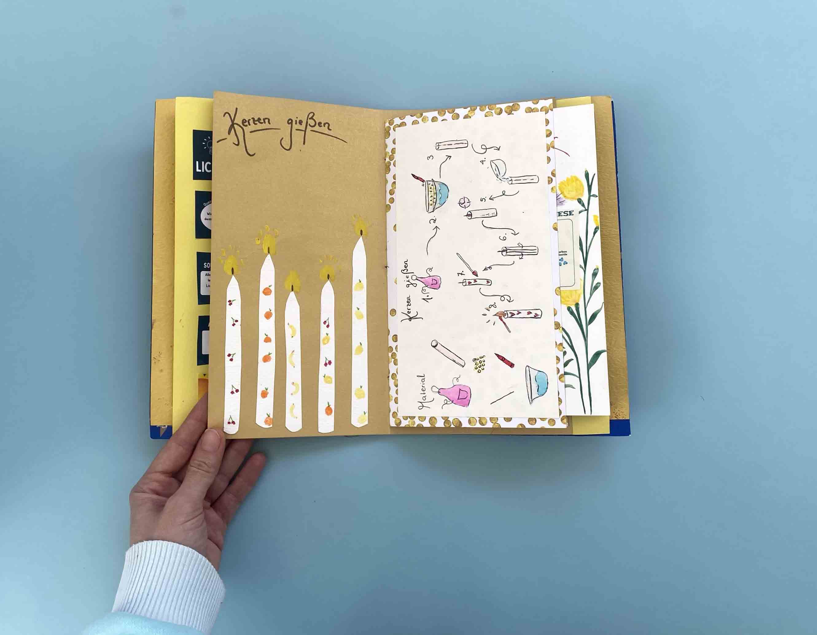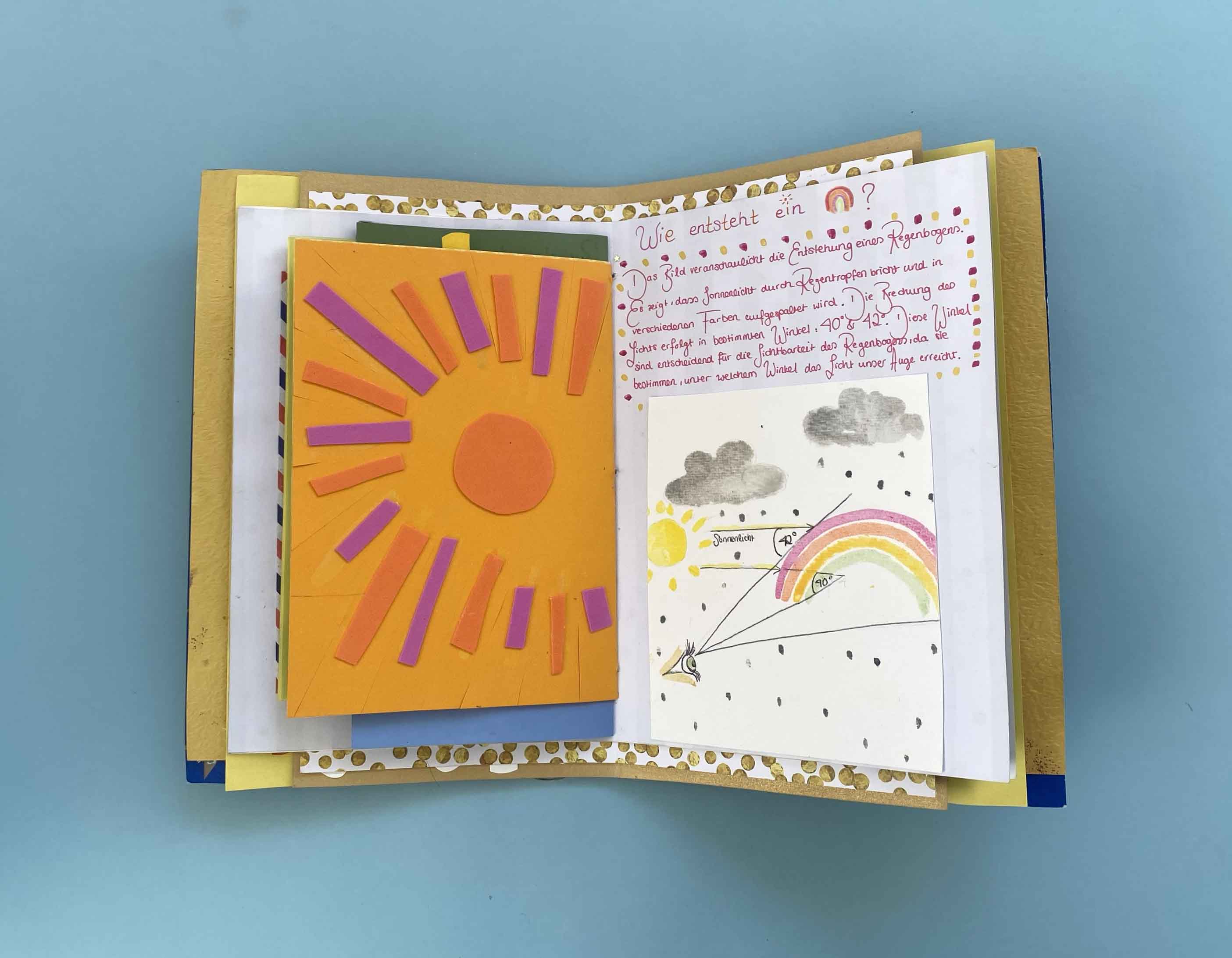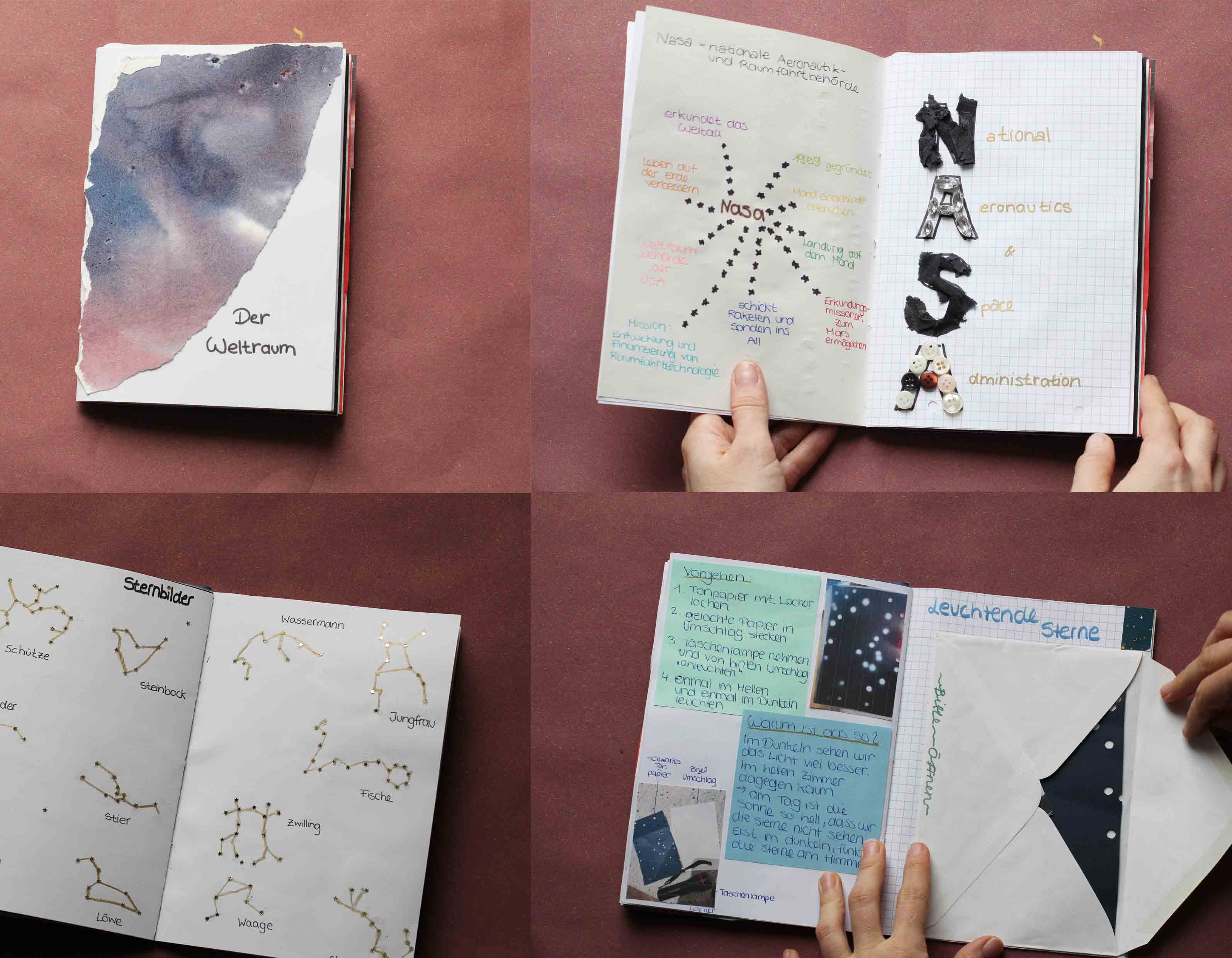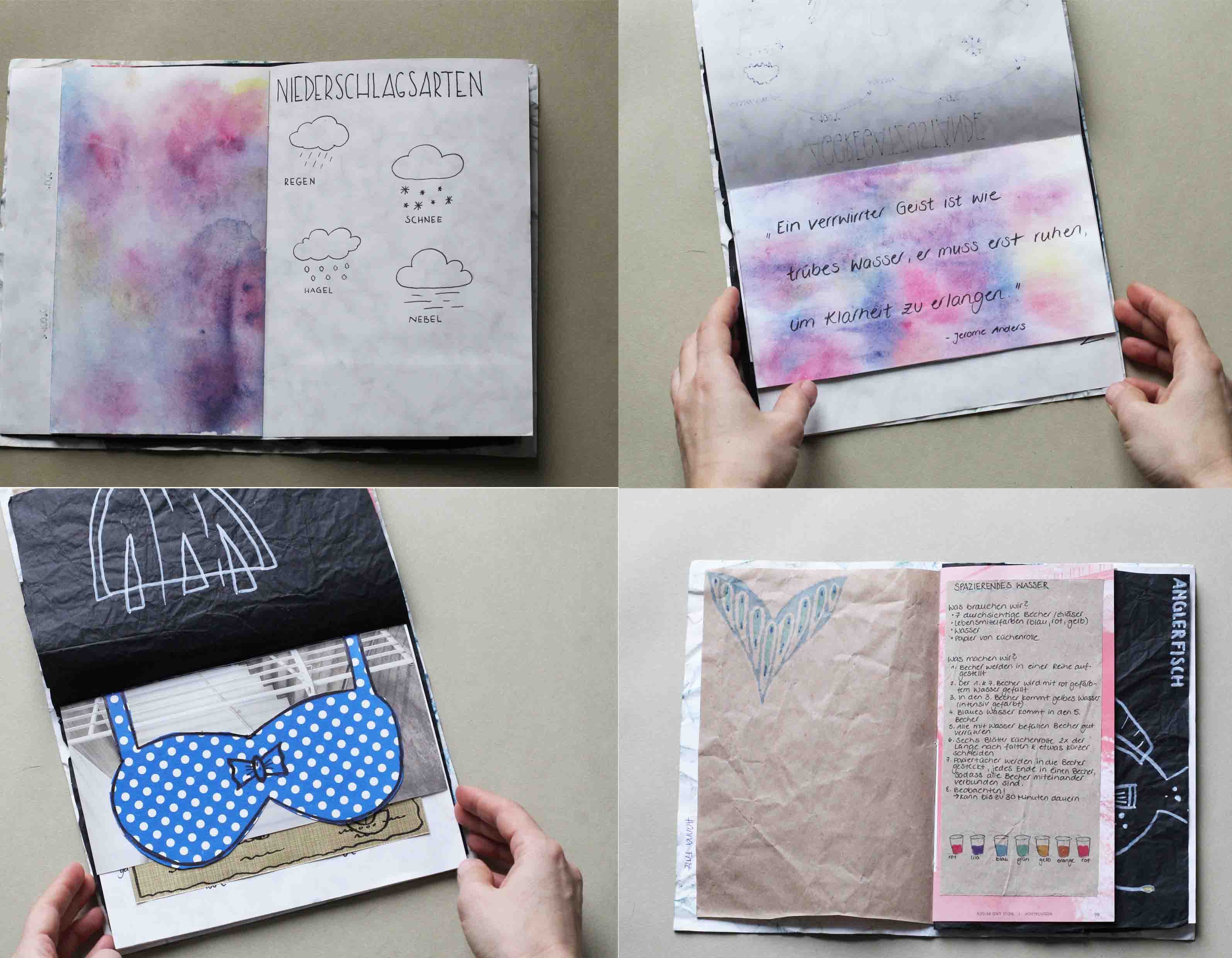 Im Unterricht haben wir die Aufgabe bekommen, uns aus verschiedenen naturwissenschaftlichen Themen einen Bereich auszuwählen. Dabei konnten wir beispielsweise zwischen den Themen Wasser, Pflanzen, Boden, Feuer, Weltraum oder Körper wählen. Hier war nicht nur der künstlerische Ausdruck im Fokus, sondern ebenfalls das Experimentieren mit Kindern. Bei der Erstellung der Junk Journals waren der individuellen und vielfältigen Ausdrucks- und Gestaltungsweise keine Grenzen gesetzt.