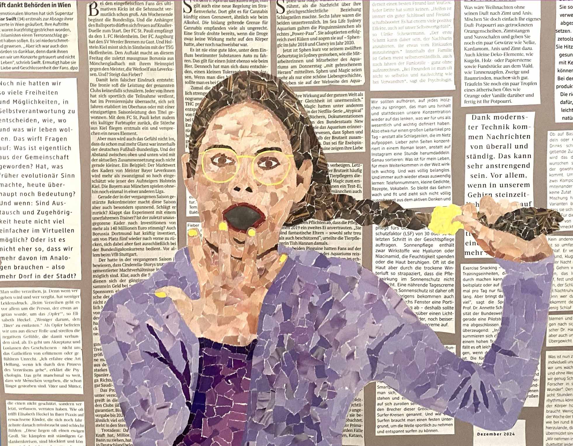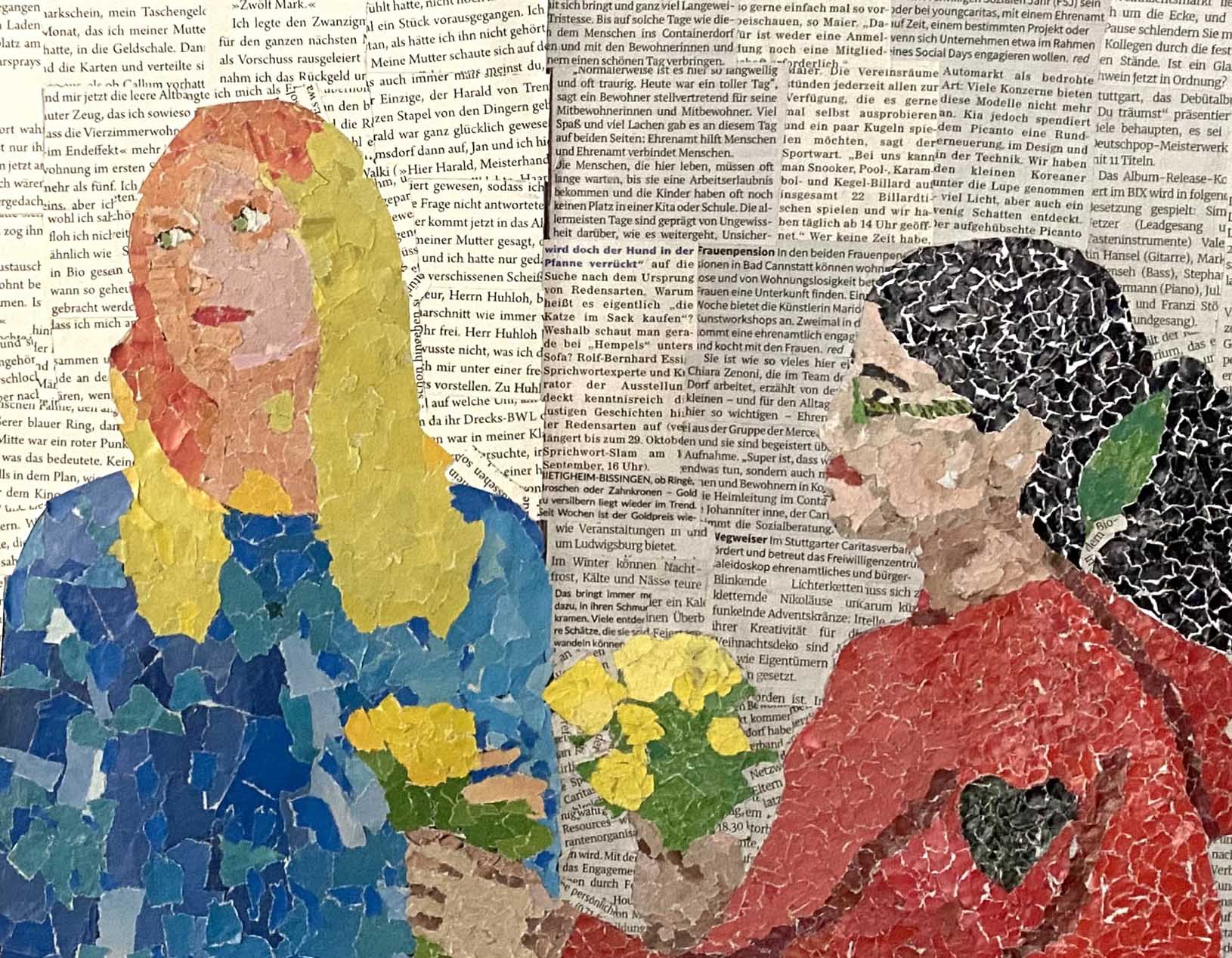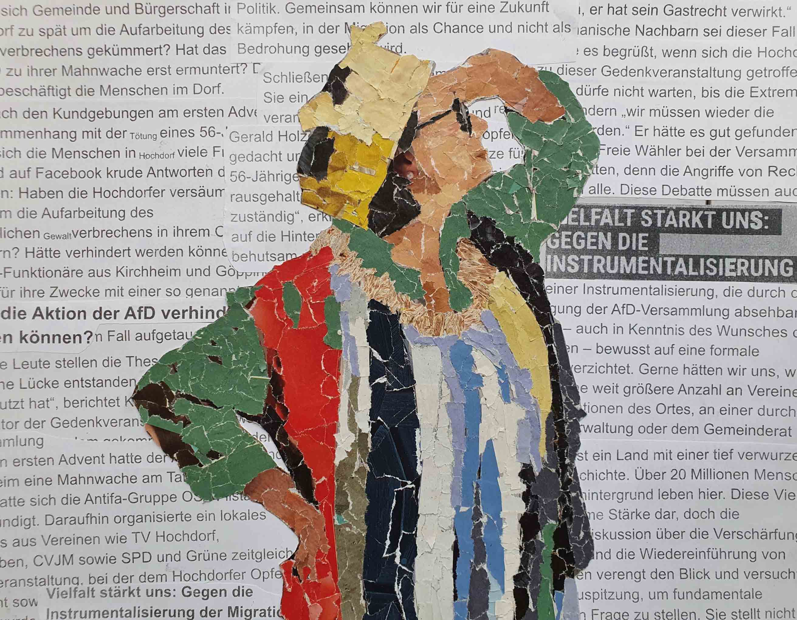 Im Ästhetikunterricht nähern wir uns der Frage nach der Identität mit den Händen und dem Verstand. Es wird gerissen und geklebt, der passende Schnipsel wird gesucht und gefunden und am Ende soll auch der Text im Hintergrund etwas über die Schülerin oder den Schüler selbst erzählen.