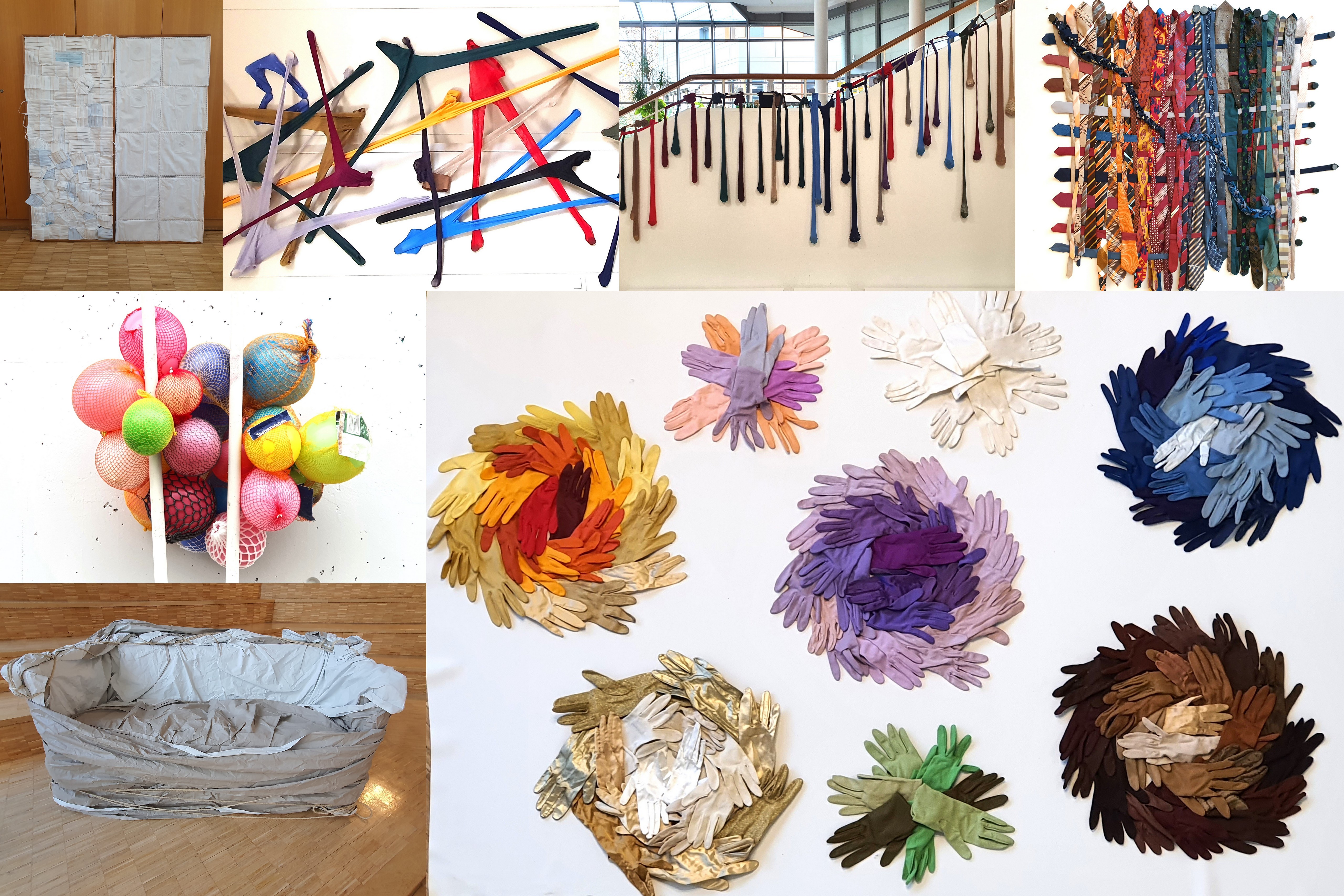 Aus Masken, Feinstrumpfhosen, Handschuhe, Krawatten, Netze und Stoffbahnen sind spannende Experimente und Installation entstanden. Ein Museumsbesuch in der Staatsgalerie rundete das Angebot ab. Dort bekamen wir eine Führung zu Kunstwerken, die mit Materialen aus Textil hergestellt wurden.