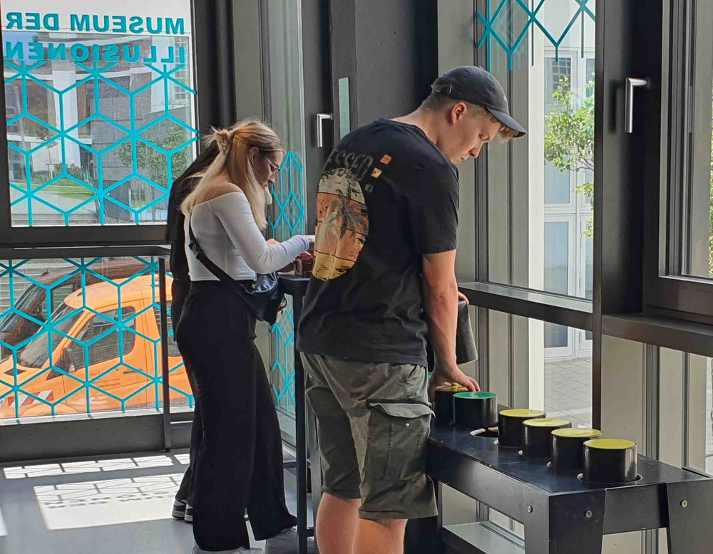 Im Unterricht hatten wir uns zum Abschluss mit Museumspädagogik beschäftigt und konnten bei der Exkursion ins Museum der Illusionen die Verbindung zu Naturwissenschaftlicher Bildung herstellen. Die künftigen Erzieherinnen und Erzieher nahmen viele Ideen für die Arbeit mit (Schul)Kindern und Jugendlichen mit.