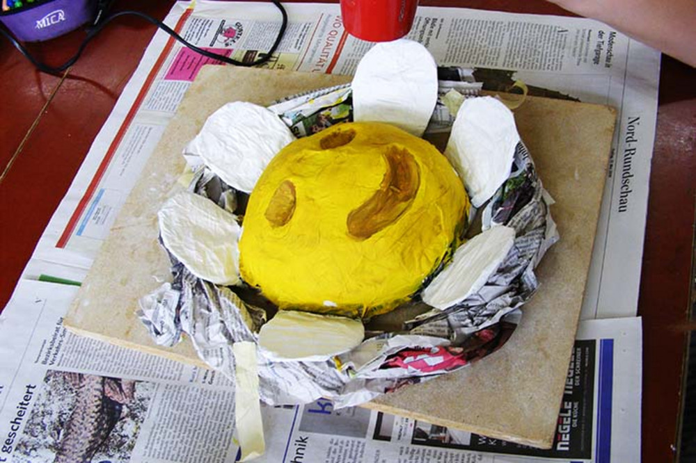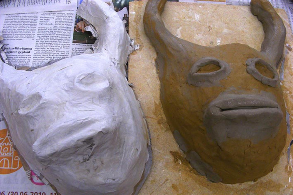 Diese Herstellungsmethode eignet sich sehr gut, um auch große, tragbare Masken zu bauen – unsere werden jedoch nun erst einmal an der Fachschule ausgestellt. Am 8. September sind sie im Garten des "Großheppacher Schlosses" in Weinstadt zusammen mit vielen anderen Kunstwerken und Installationen zu sehen.