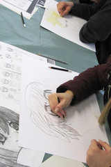 Im anschließenden Workshop ging es darum, selbst zum Zeichenstift zu greifen. "Mangas" waren hier das Thema. Die Figuren mit ihrem speziellen Ausdruck sind Motive, die nicht jedermanns Gefallen finden, die den Studierenden beim nächsten Schulkindpraktikum jedoch vielleicht wieder begegnen werden. Sie nachzuzeichnen war jedenfalls eine mit Spaß verbundene Herausforderung.