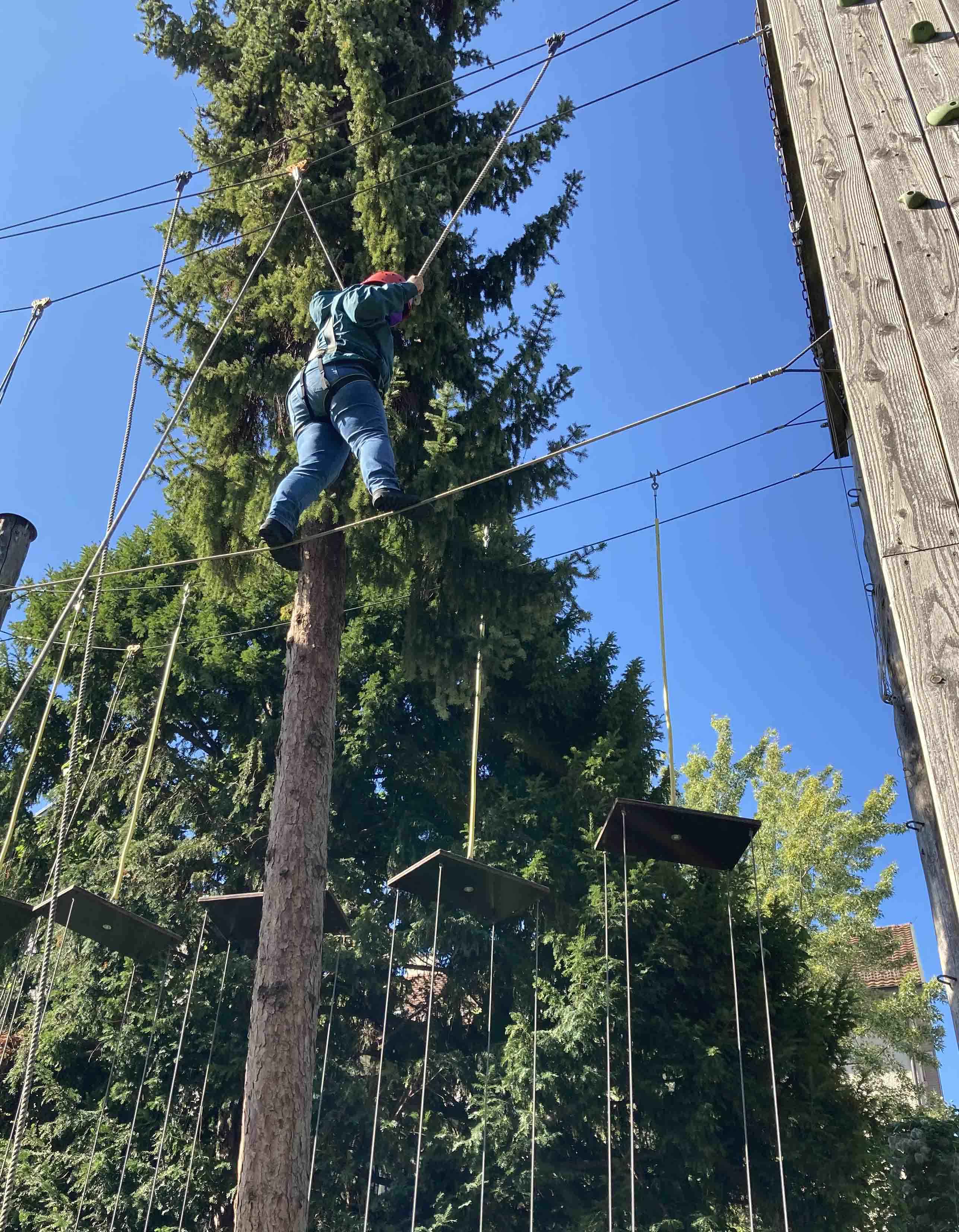 Schließlich ging es gut gesichert hoch hinaus, was den eigenen Mut herausforderte und das Vertrauen in die Sicherung durch andere. Was für ein Hochgefühl, es geschafft zu haben! Was für eine Erfahrung, die eigene Kraft aufzubieten, um anderen Sicherheit zu geben! Köstlich schmeckte hinterher das Picknick, zu dem alle etwas beitrugen.